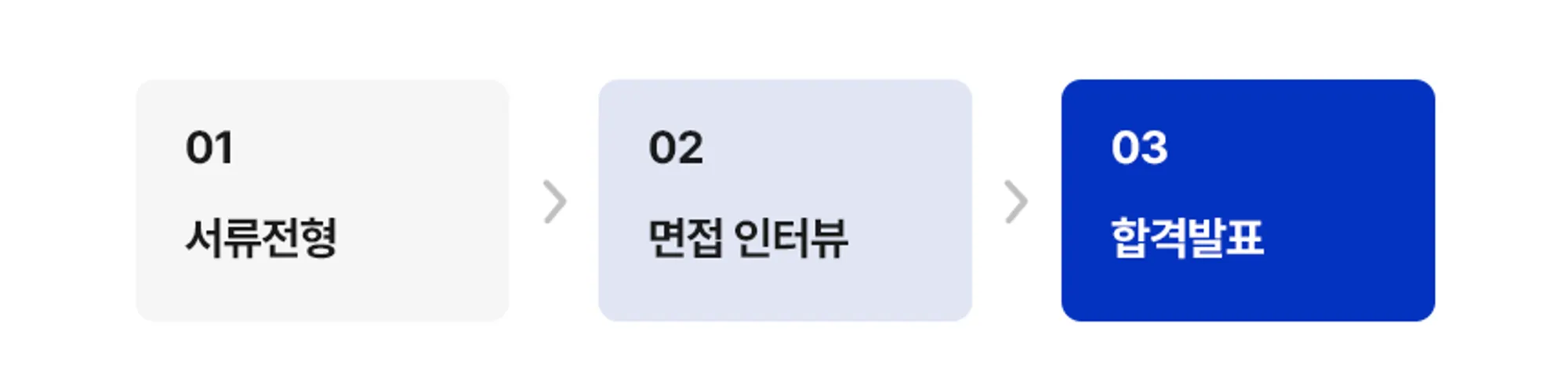 채용은 아래와 같은 프로세스로 진행되며, 상황에 따라 변동되는 경우 개별 안내 드립니다.
